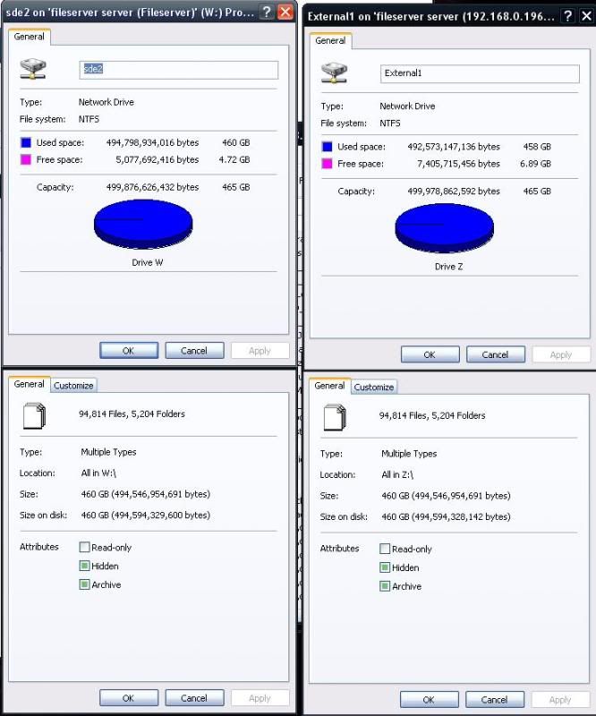 You have already checked for corruption several times. If you're really paranoid about it, you can't do better than the diff command I gave you before. That command does a byte-by-byte comparison of every file. It reports mismatches, and it will also report if it can't find a file in one of the two directories.awalp wrote:2a) if they're based on hardware how would I check for differences in inode sizes to rule out corruption issues?