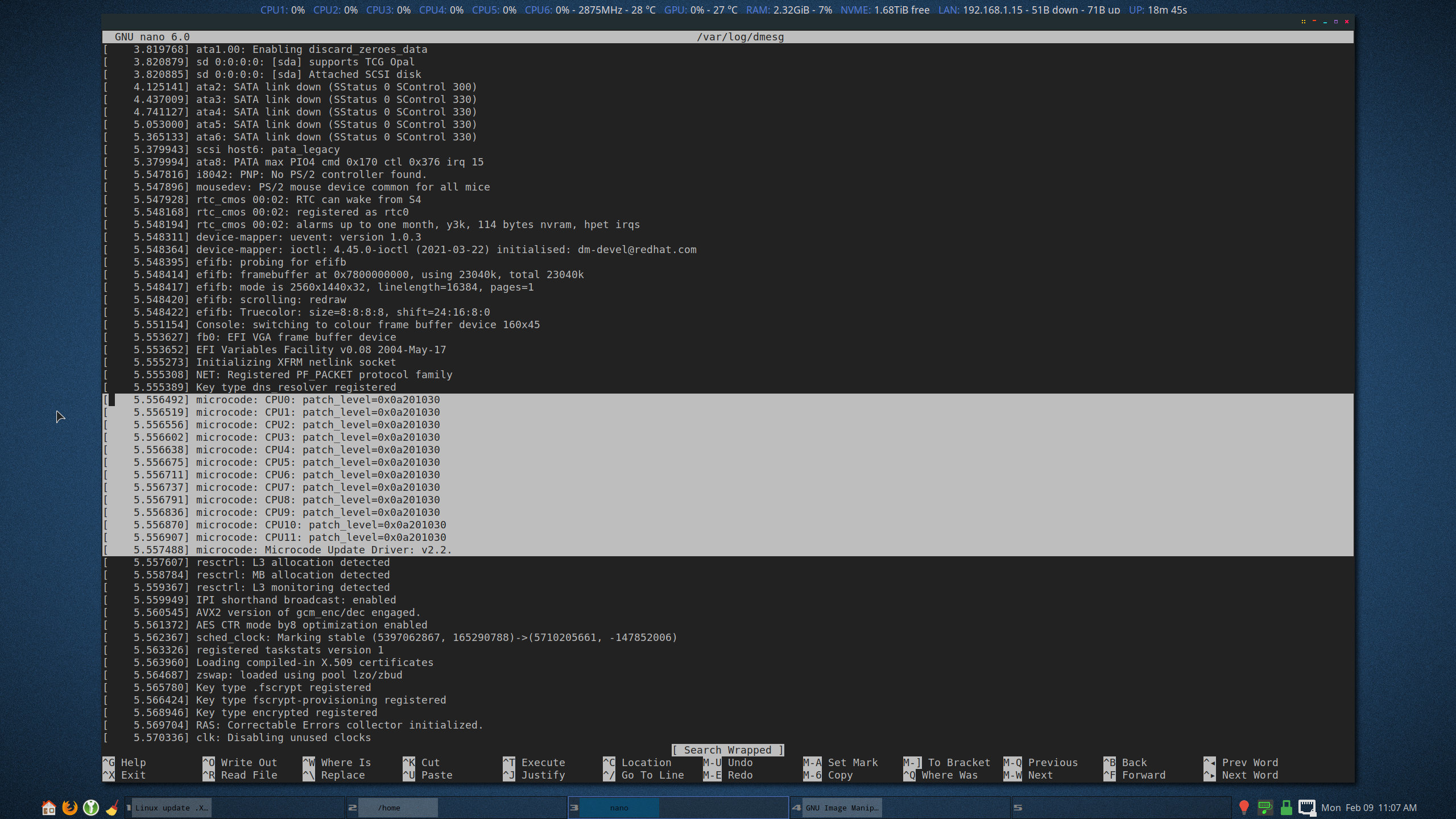 dmesg | grep microcode